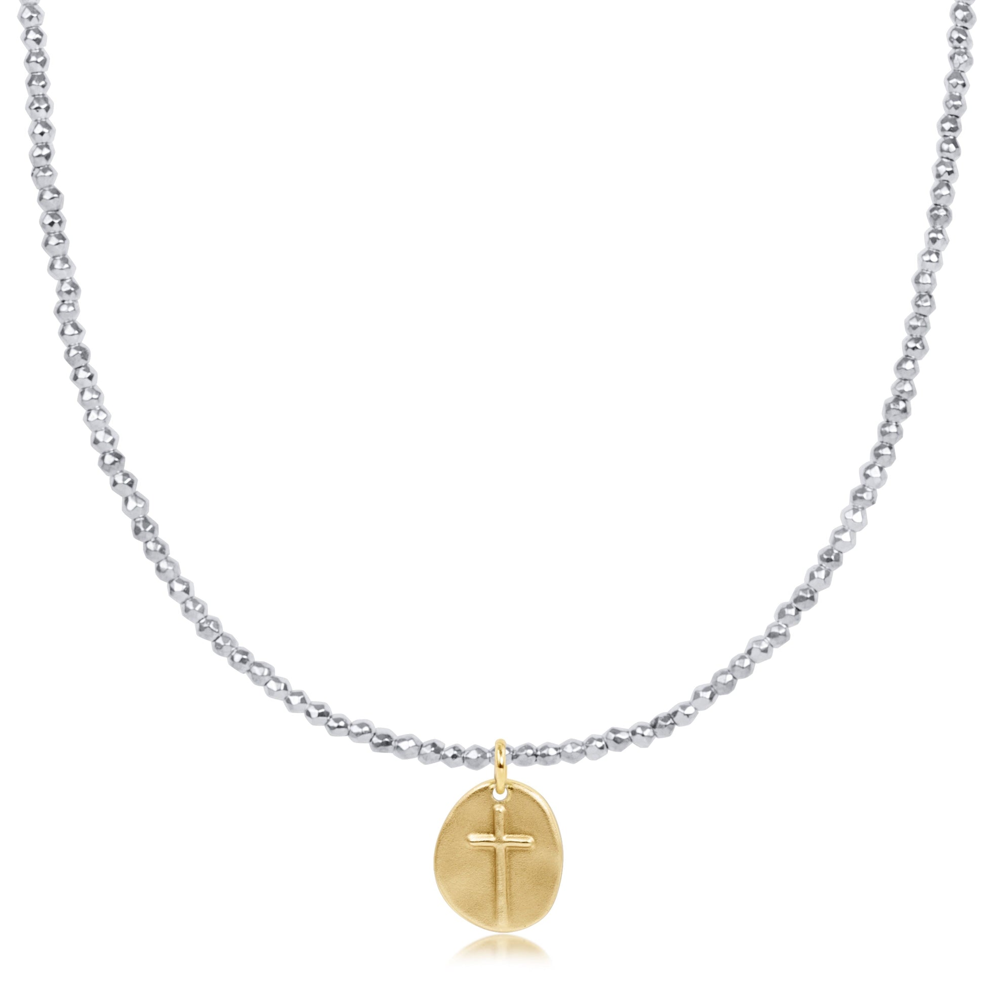 choker bright silver faceted hematite 2mm bead - inspire small gold charm
