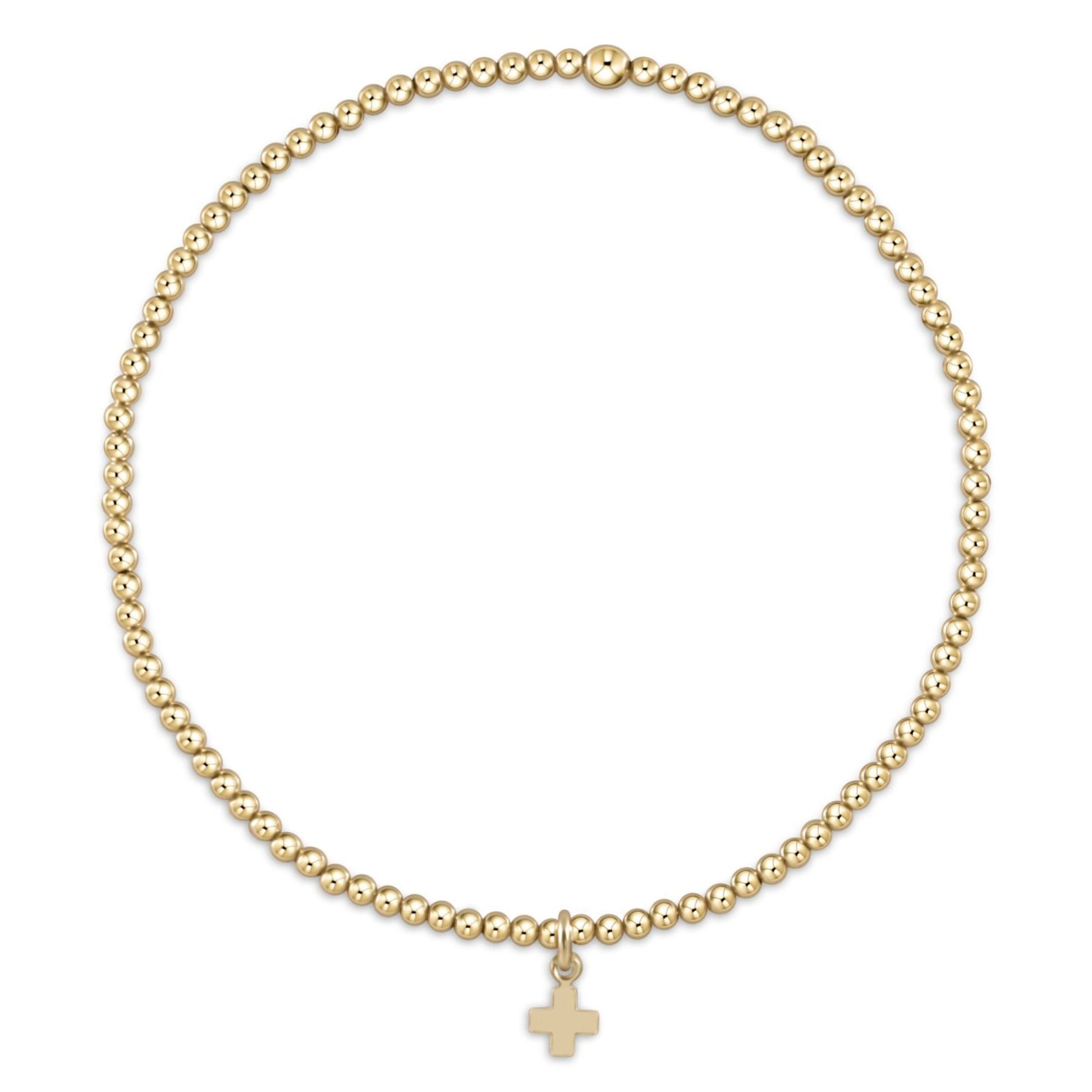 Classic Gold 2mm Bead Bracelet - Signature Cross Small Gold Charm